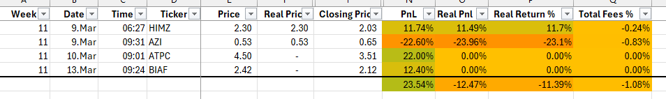 11. hfta tradelerini bu bültende yorumluyorum.