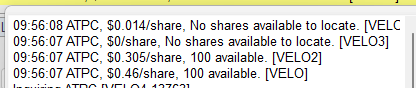 ATPC sinyali gelmiş de ne güzel %22 kârla kapanmış gibi duruyor ancak, aşağıda görüldüğü gibi ya locate masrafı hisse başına 0.30 dolar yani %6.66 ile epey yüksek. Diğer masraflar hariç en azından %6.66 düşmeli ki kâr edilebilsin. %3’ten daha yüksek locate masrafı olunca ben hiç giriş yapmıyorum. Zaten bir sonraki görselde de görüleceği gibi o pahalı hisseler de locate edilemez olmuş.