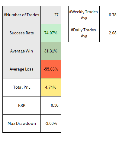 Son 4 hafta bu adımlarda geçti. Bu strateji günde ortalama 2, haftada ortalama 7 işlemle, şimdiye kadar herhangi bir işi engelleyecek gibi durmuyor. İş yükü olarak bu strateji her hangi bir engel teşkil edecek gibi durmuyor.