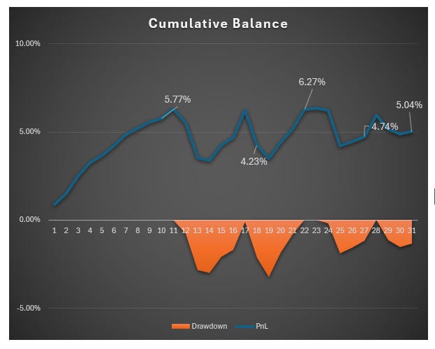 Strateji ilk haftaki çıkıştan sonra, iyi bir performans gösterebilmiş değil. Bir kaç hafta bu şekilde duraksaması normal. Mühim olan tekrar bir çıkış yakalayabilmesi. Şu an içinde bulunduğumuz hafta çıkışa geçecek mi göreceğiz. Önceki bültende yakın zamanda canlı tradelere başlayacağımı söylemiştim. Bu hafta öyle planlıyordum ama yoğunluktan dolayı başaramadım.