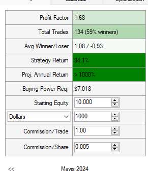 Yukarıdaki verilere kendim ulaşmadığım için, ne kadar yapana yeterince güvensem de, verilerin güvenilirliklerinden %100 emin olamam. Bu nedenle 5 Şubat 2024 - 3 Mayıs 2024 tarihleri için kendi yaptığım backtesi de burada paylaşıyorum. Tarih olarak daha gerisine kadar gidememenin sebebi elimdeki geçmiş verilerin ancak 5 Şubat 2024’e kadar gitmesi.