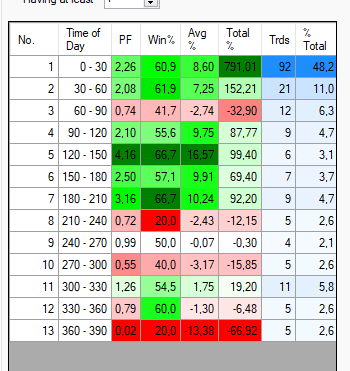 Örneğin tamamen aynı parametleri bütün market saatlerinde yani yerel saat ile 09:00 - 16:00 arasında uygulamak yerine, 09:30 - 11:30 arasında uygularsak, sonuç şu şekilde oluyor.