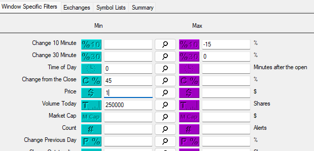 fiyatı son 10 dakika içersinde en çok -15% düşmüş olması.