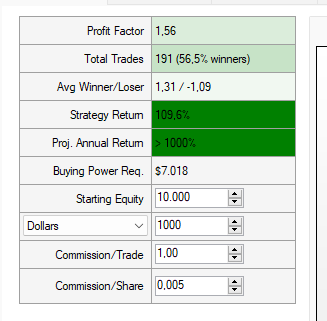 Commision / Trade: Pozisyon başına ödenen komisyon 1 dolar olarak belirledim. Brokera göre belirlenir, bunları önceden girip projeksiyonda net karı görmekte fayda var.