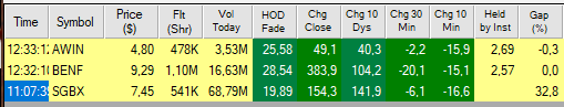 Backtesti gene hisse tarayıcısı programı Trade Ideas ile yapıyorum. Bu program bu fonksiyonu ile de hayatı epey kolaylaştırıyor. Yukarıdaki filtrelerin aynılarını uyguladığım zaman çıkan sonuçlar şöyle;