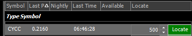 Örnek olarak 30 Nisan 2024 tarihinde premarkette en hareketli hisse olan CYCC’nin hisse başına short locate fee’si Tradezero adlı brokerda aşağıda görüldüğü gibi 0.1185 dolardır.