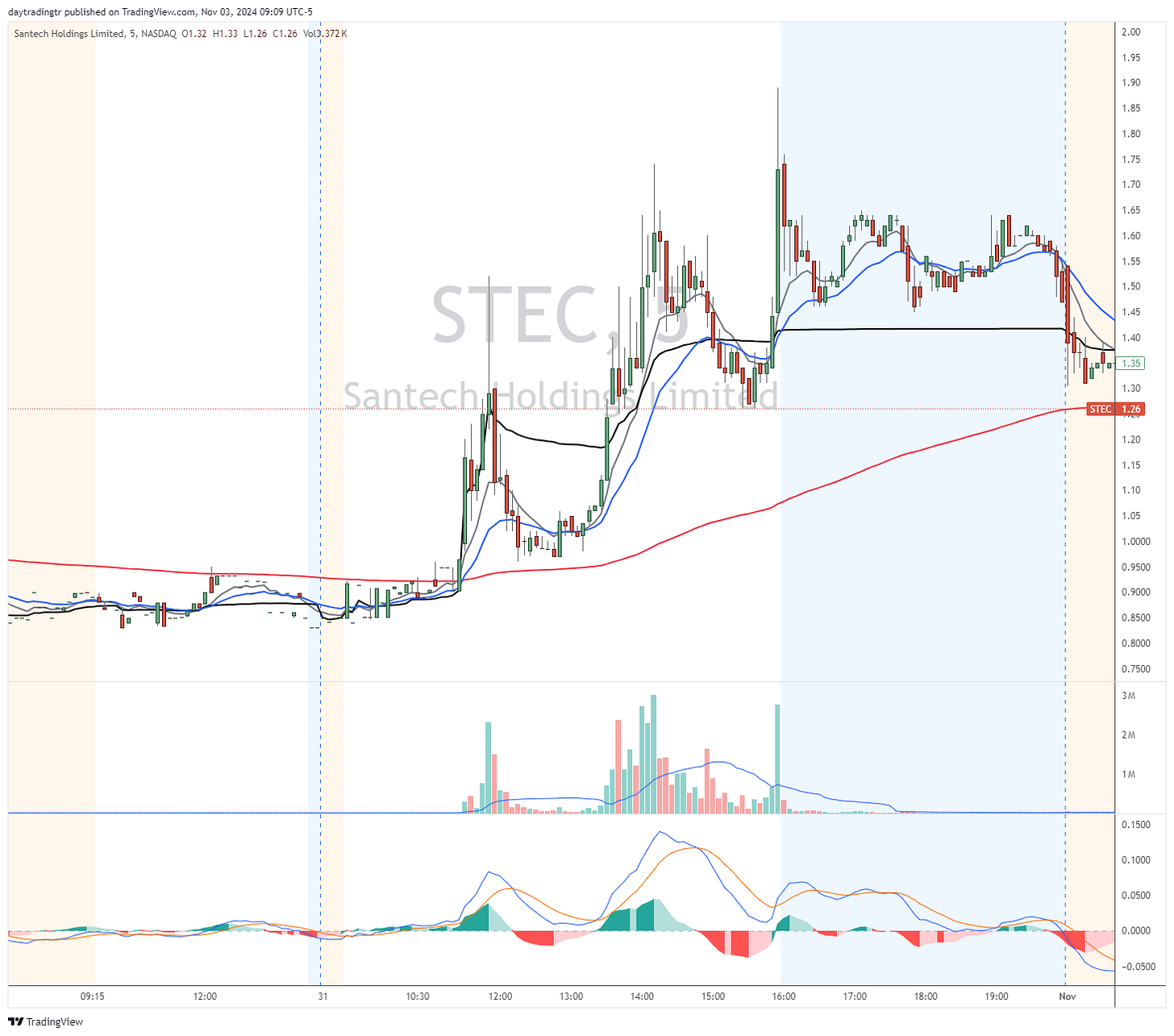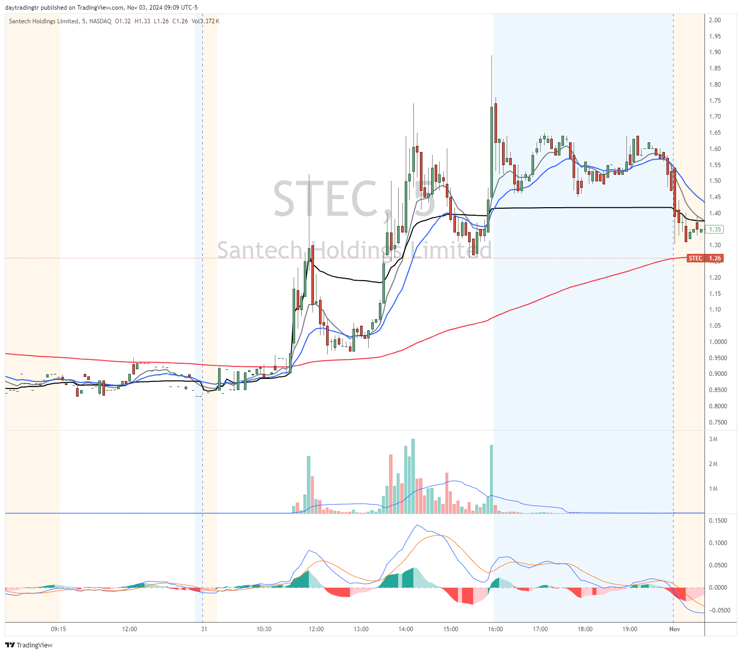 STEC çok hızlı çıkıp indikten sonra ani bir ivmelenme ile tekrar VWAP’in üstüne çıktı. Açıkçası bu hareketlenmeyi hiç beklemiyordum. Bu ivme yeni tepeler yapana kadar devam etti ve sonrasında fiyat VWAP’e geri çekildi. Ancak ilgi hala geçmemişti ve market sonrasında tekrar bir tepe yapıp fiyat VWAP’in üstünde kaldı.
